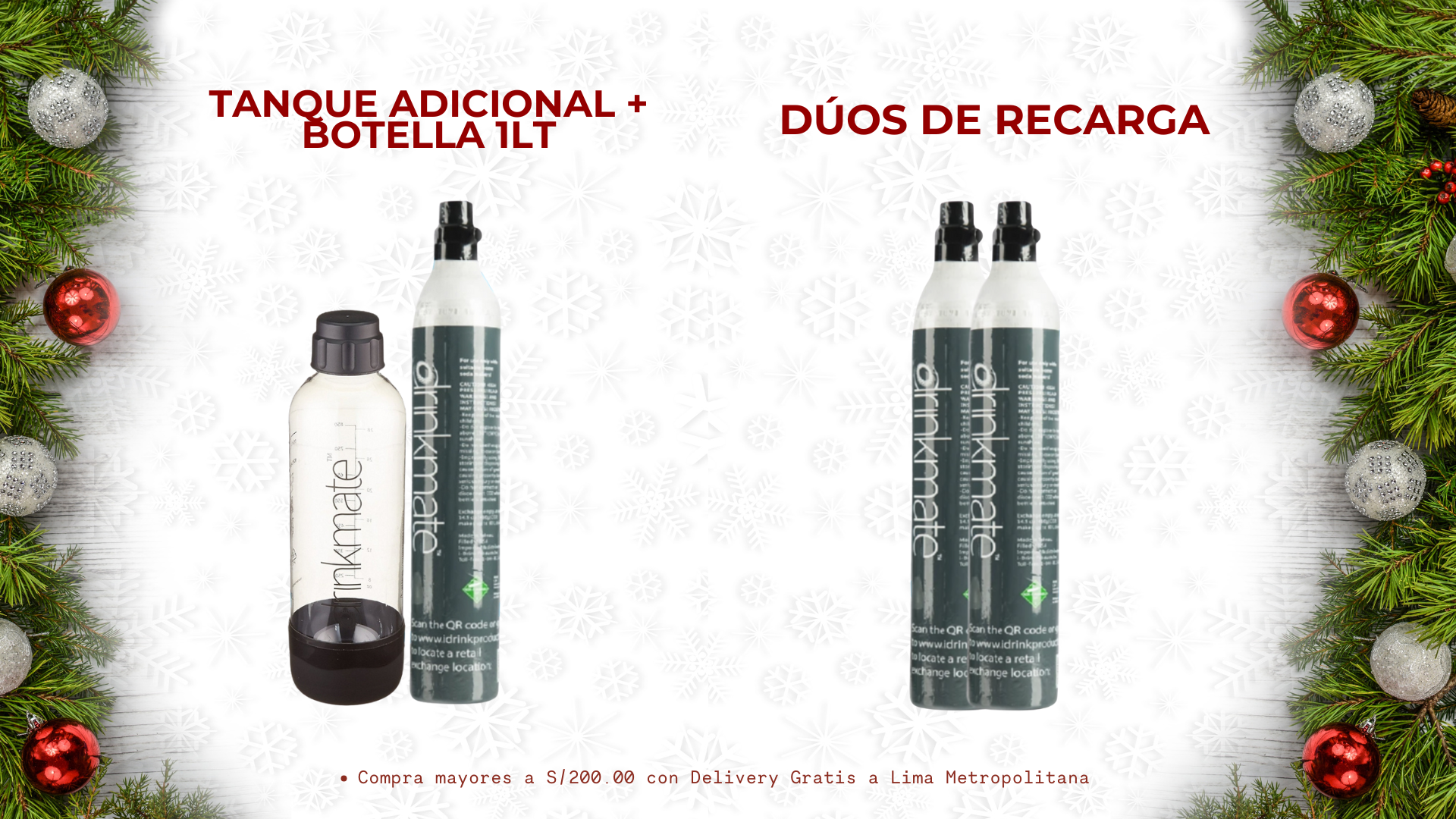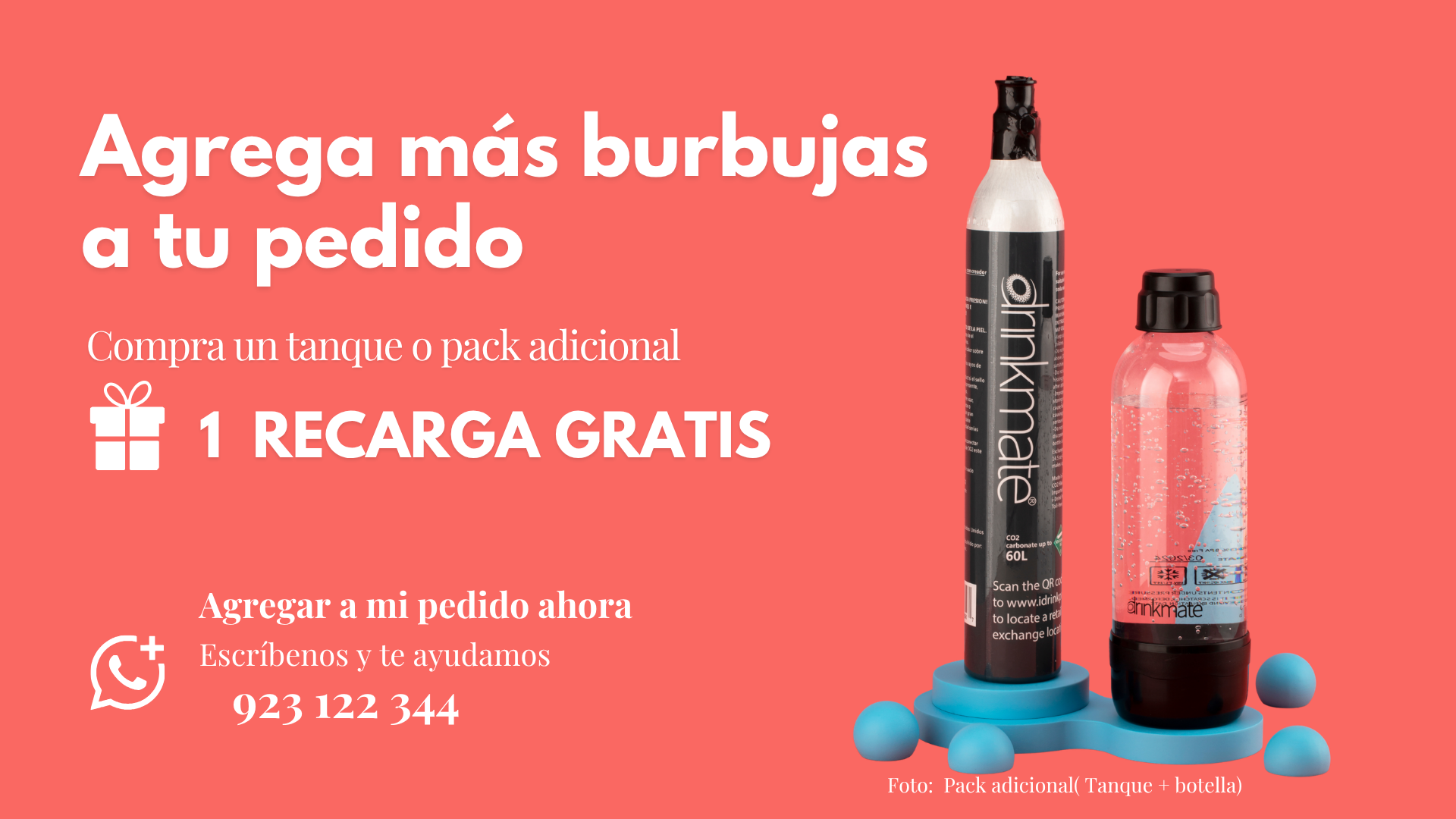 Nuestro Kit Drinkmate incluye el sistema de gasificación, un tanque con gas y una botella para gasificación.